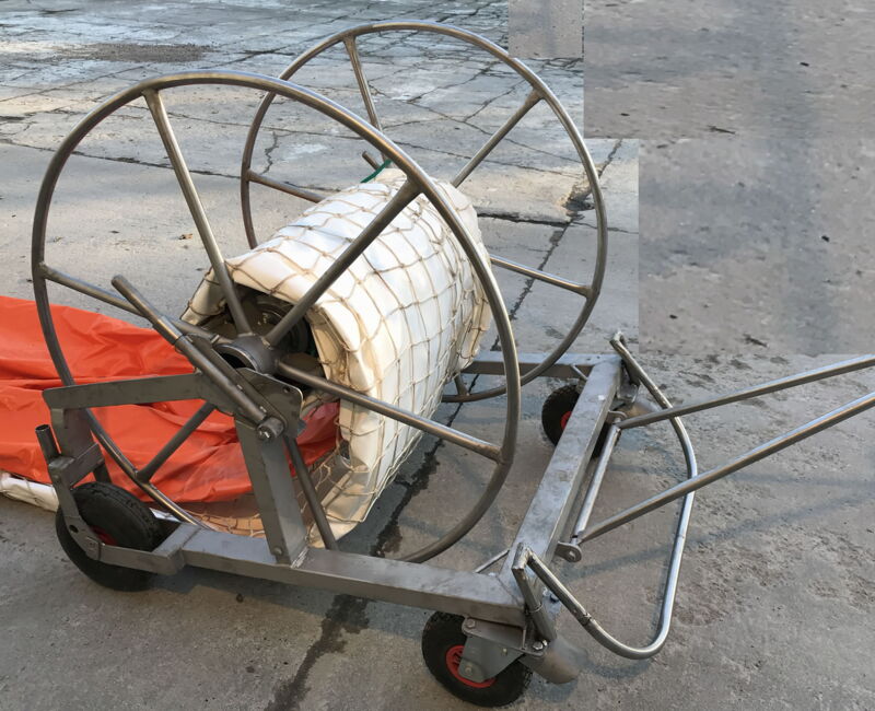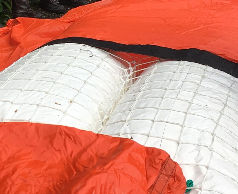 Die MOBILDEICH-Schlauchdämme sind fertig in die patentierte Netzummantelung eingeflochten.