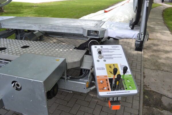 sind PKW-Anhänger mit einem hydraulischem Kipprahmen, die selbsttätig Deichtrommeln aufnehmen und dann ausrollen können.