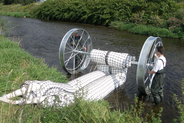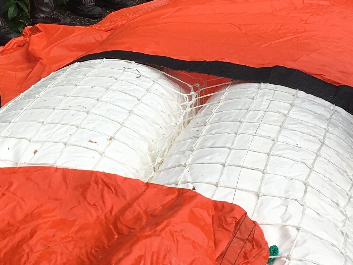 werden diese Kräfte über Schweissnähte zwischen den Schläuchen oder über einzelne Gurte in die Schlauchhülle selbst eingeleitet, was eine grosse Schwachstelle für diese Systeme bedeutet. Systeme OHNE Netzhülle müssen z.B. VORAB mit Luft befüllt werden, damit die Module eine Chance haben, gerade und faltenfrei zu liegen, bevor das schwere Wasser eingefüllt werden kann.