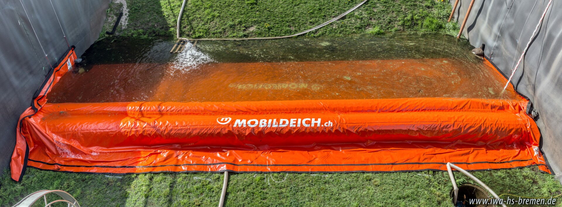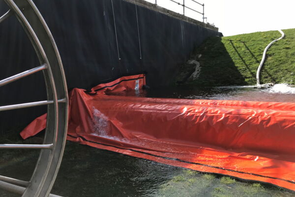 wurde in einem Testbecken für Erddeiche aufgebaut und bis 70cm Wassertiefe erfolgreich eingestaut.